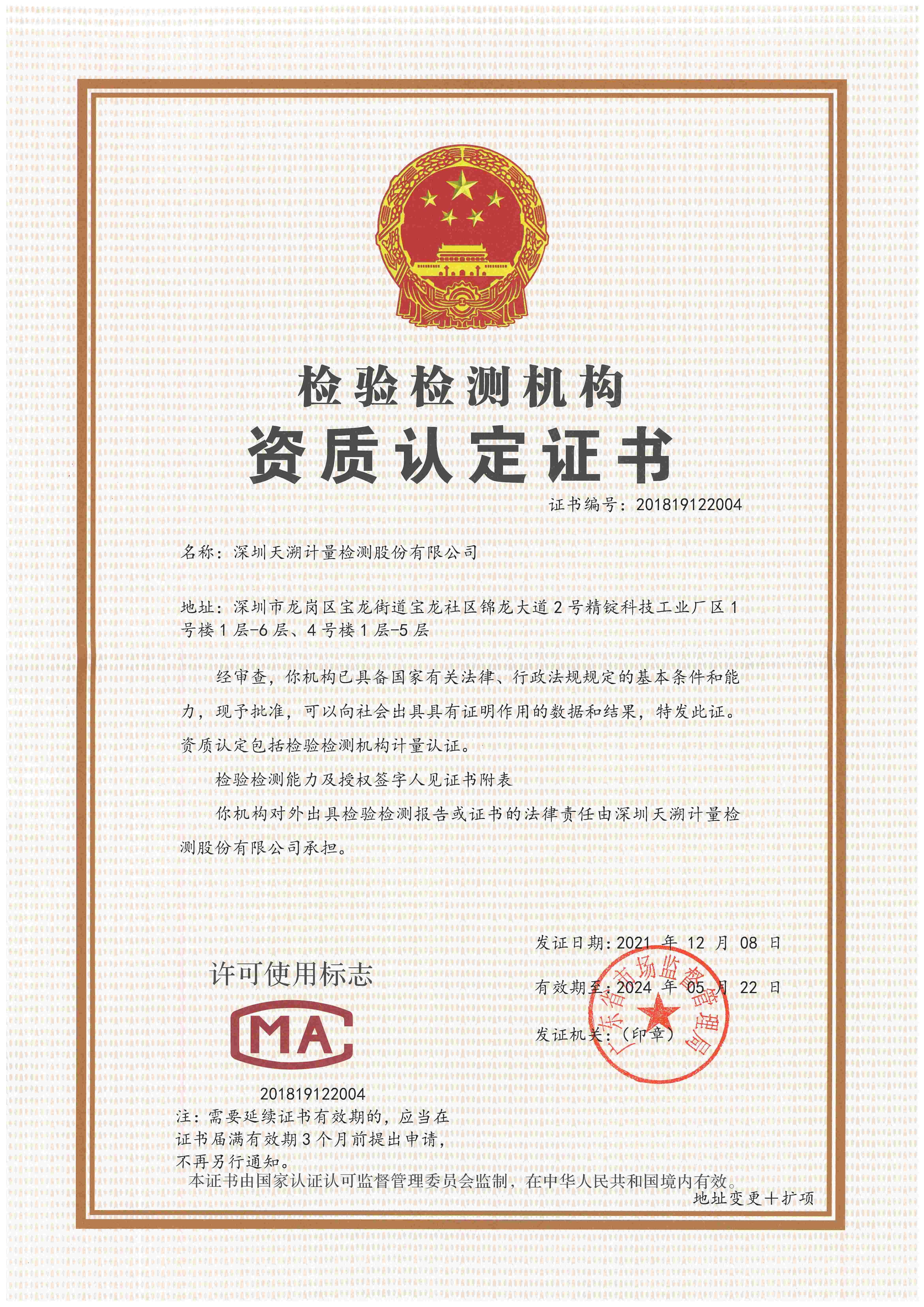 天溯集團成立于2009年,14年校準及檢測行業經驗,公司員工2000多人,在全國范圍內擁有25家分公司,擁有CNAS及CMA認可實驗室23個。獲得國家和深圳雙高新技術企業稱號,申請及獲得發明專利25項、實用新型專利28項、軟件著作權17項。專業提供儀器校準、電池檢測認證等...